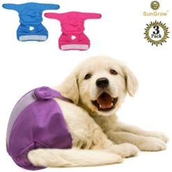 SunGrow Reusable Female Cat & Dog Diapers For Heat Cycle, 9-in To 15-in Waist, 3 Count