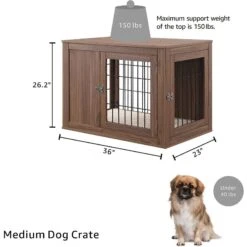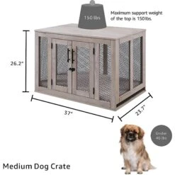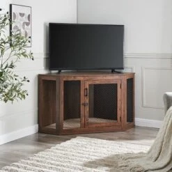 Unipaws Furniture Corner Dog Crate With Cushion, Weathered Grey