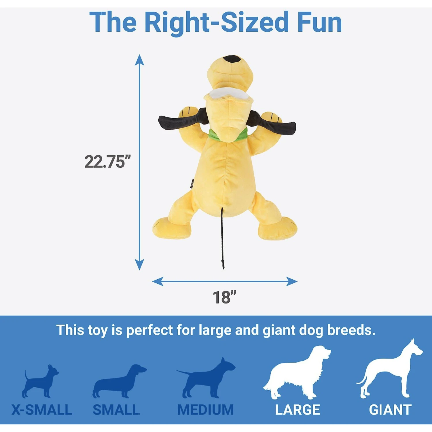 - Jumbo-size Pluto plush designed to be a large or extra-large dog’s favorite snuggle and play buddy.