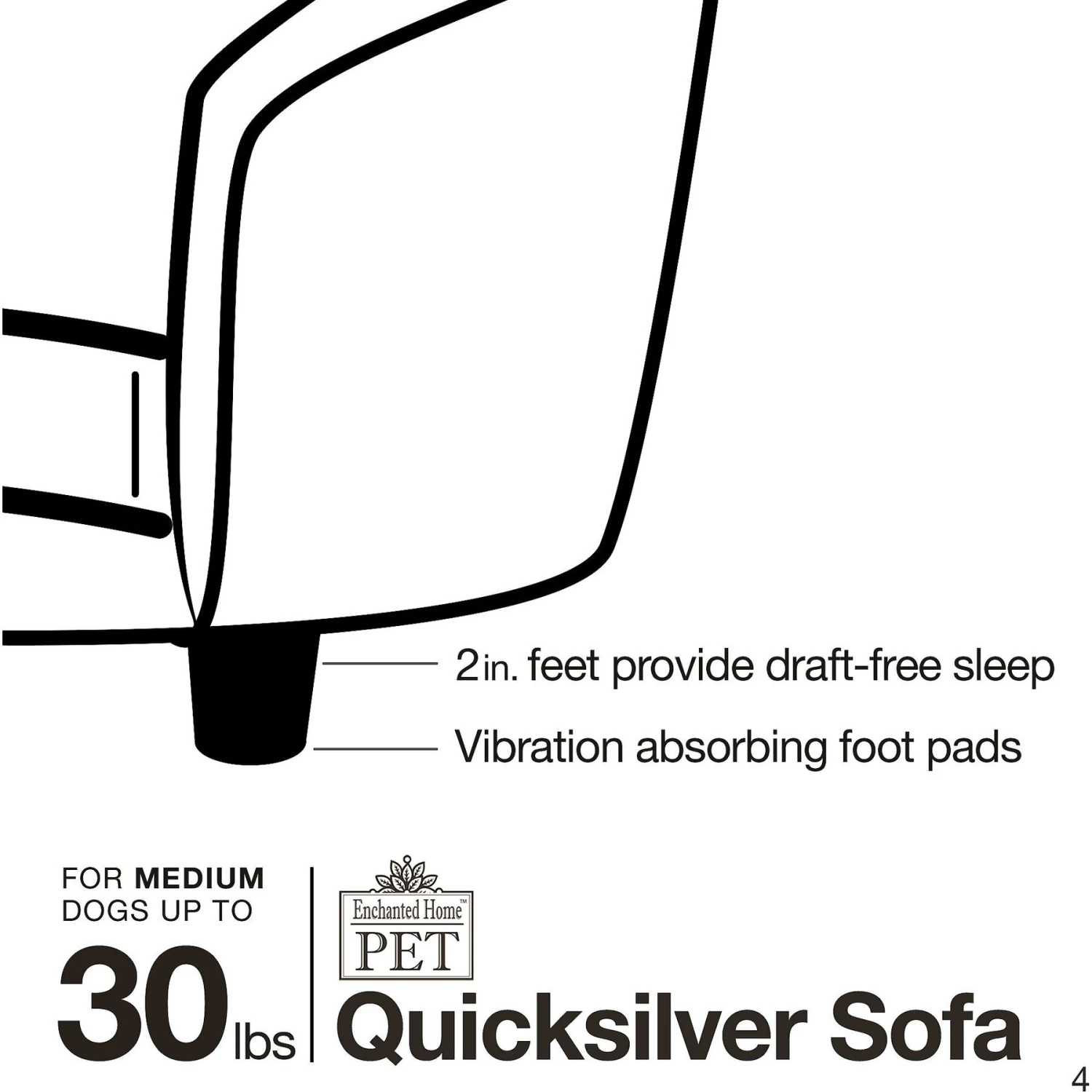 - 2-inch high legs lift the bed and absorb vibration.