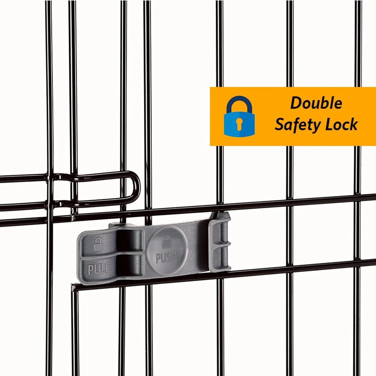 - Each crate features two reinforced doors with double safety locks plus a removable top panel for convenient, paw-rents only access.