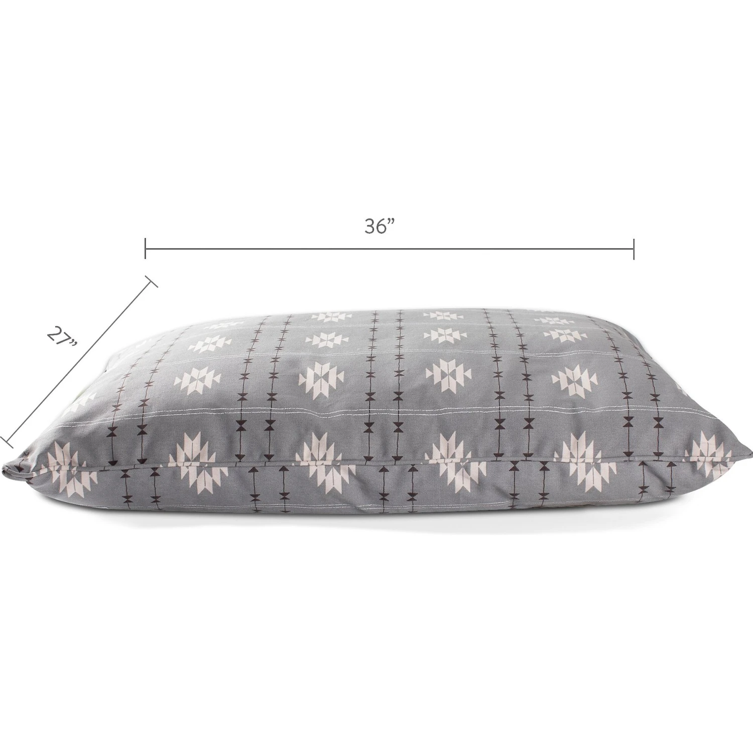 - Overfilled pillow-style bed offers comfort and support.