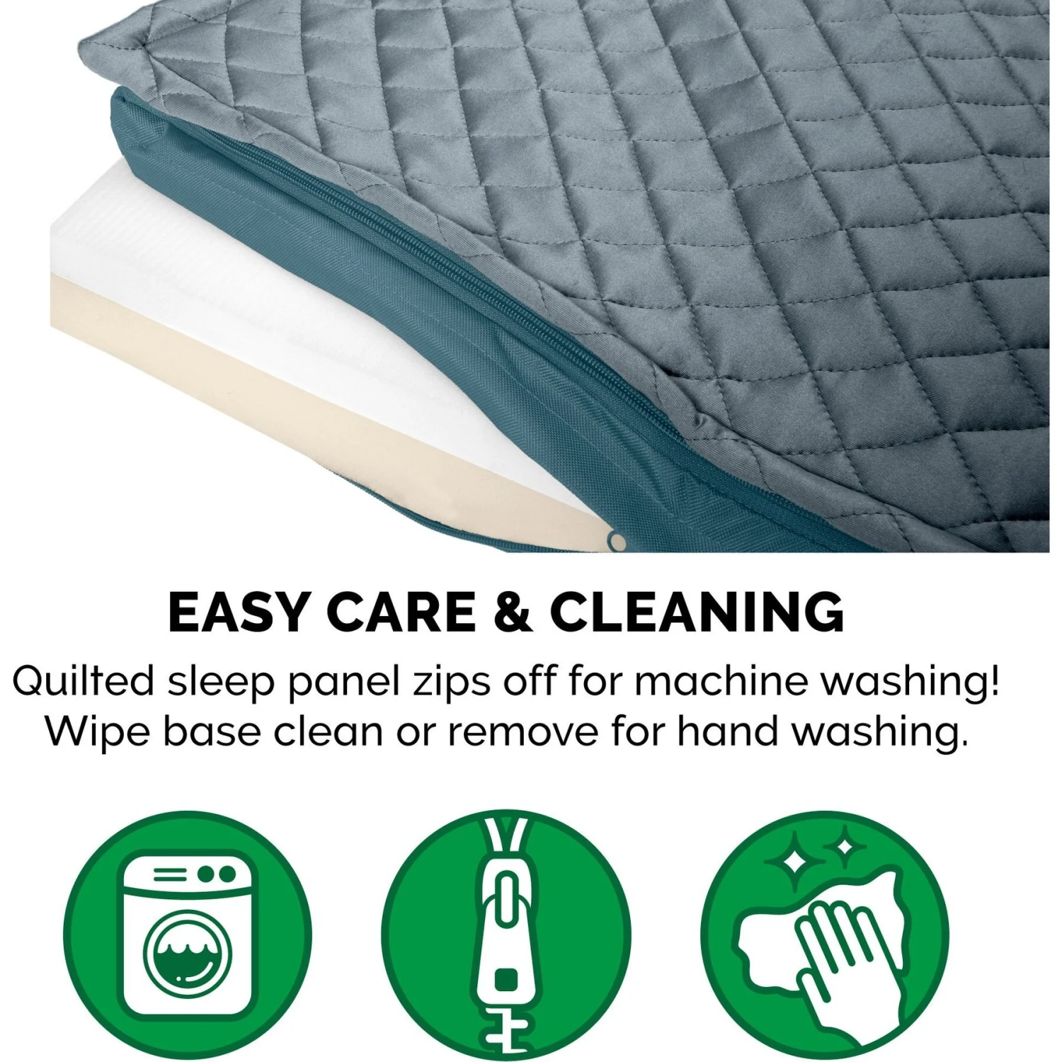 - Features a removable, padded top panel that can house additional cooling or heating pads