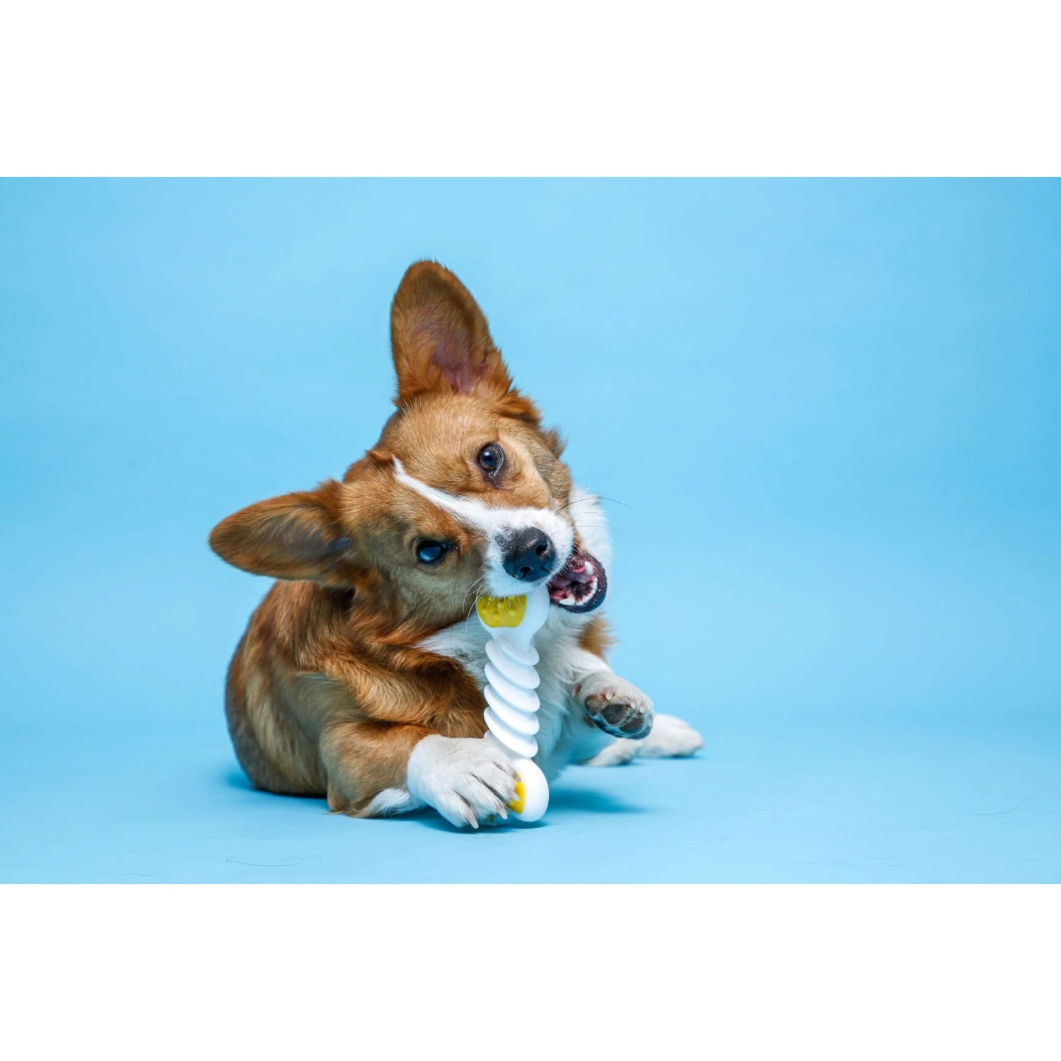 - Flexible and durable chew toy that withstands mild to moderate chewing.