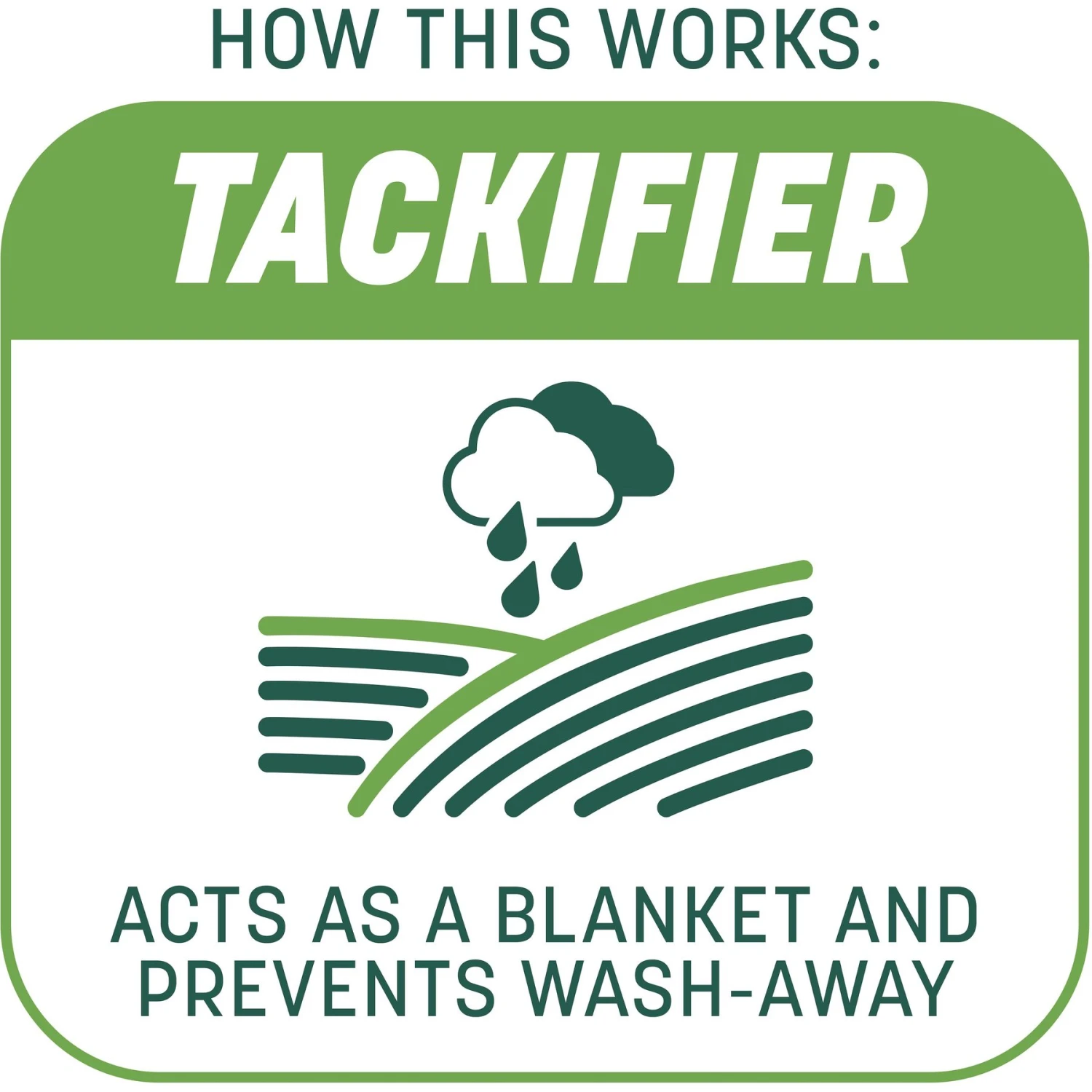 - Contains a tackifier that acts like a blanket, protecting your seed from washing away, even on slopes and hills.