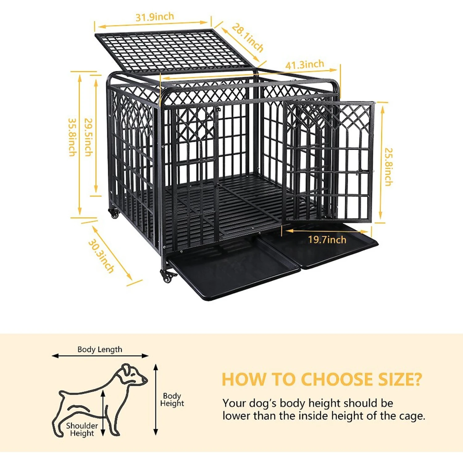 Be the first to review “SMONTER Heavy Duty Double Lock Metal Large Breed Dog Crate, Dark Silver” Cancel reply