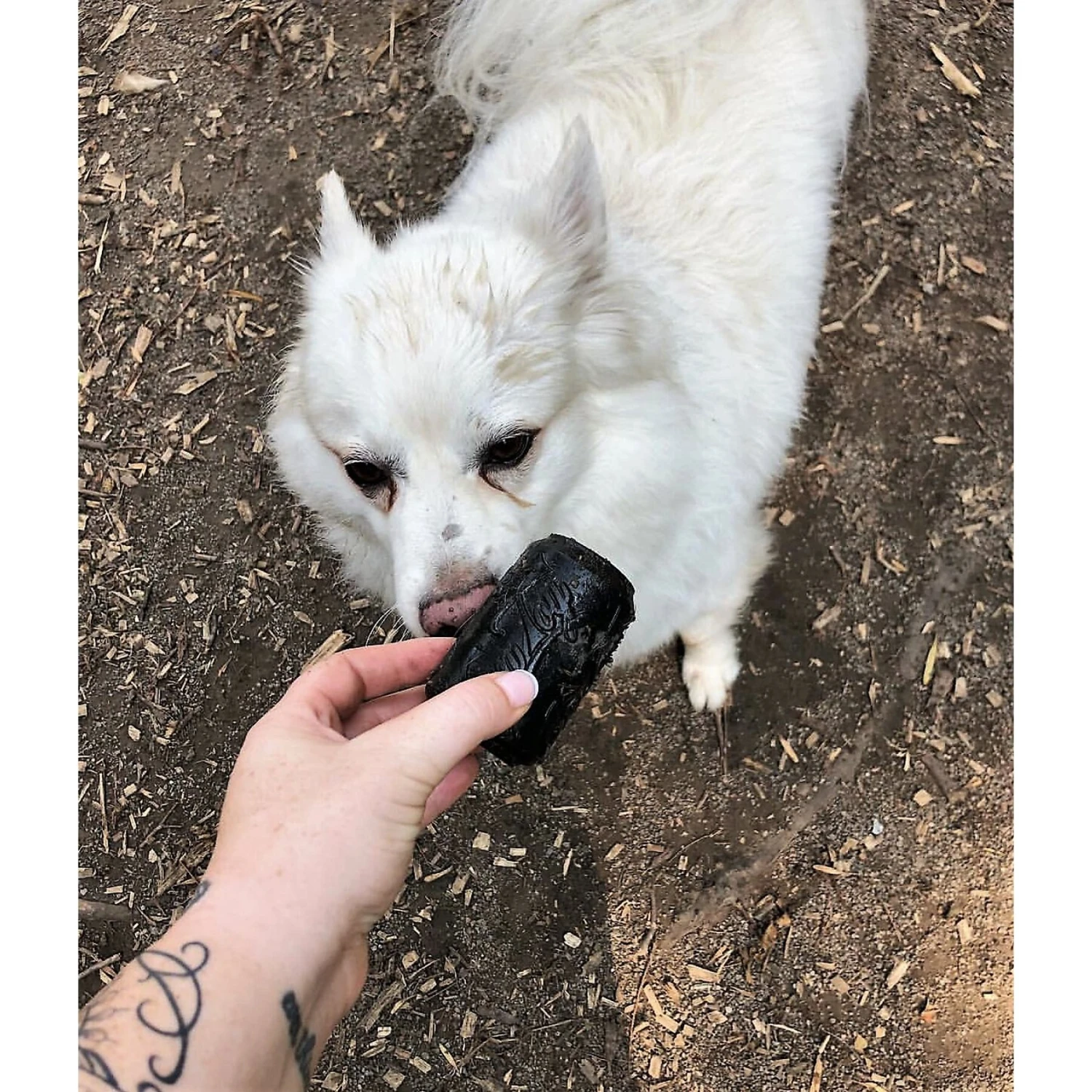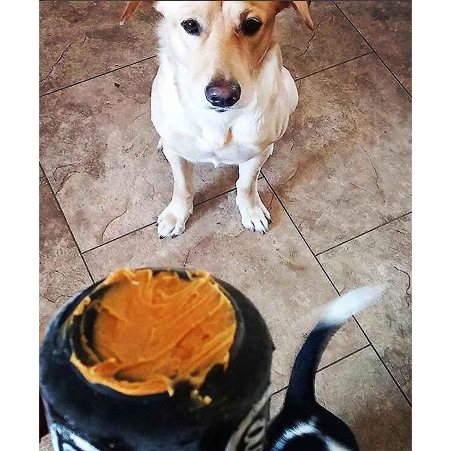 - Fill the opening with your dog’s favorite treats, kibble, wet food and lickable spreads like peanut butter.