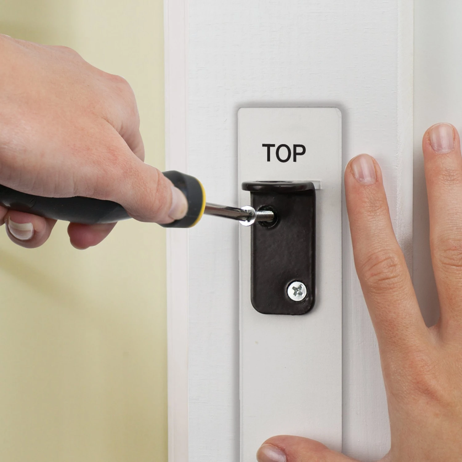 - Swing stop mechanism prevents the gate from swinging open over the stairs.