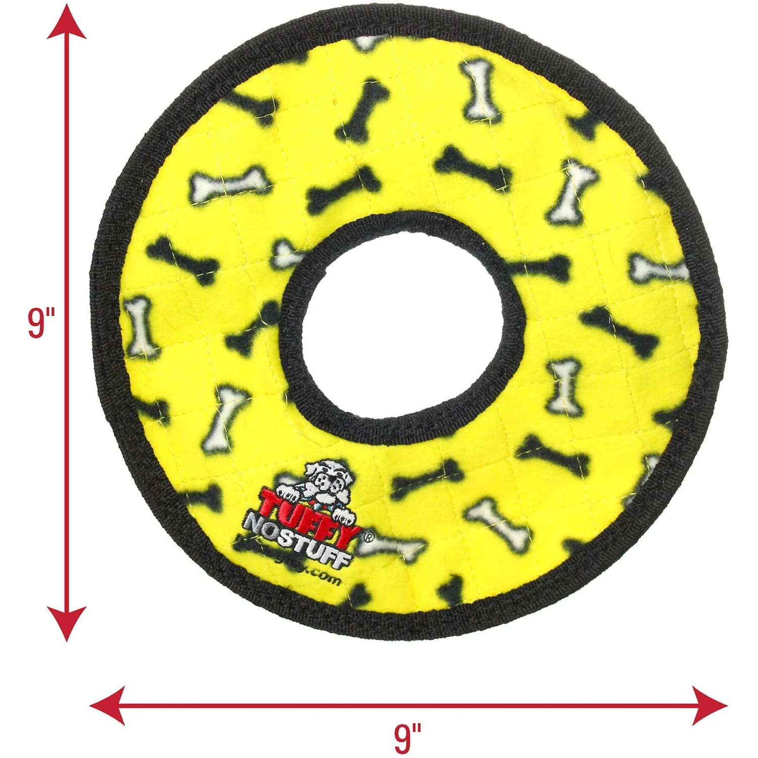 - Plush interactive toy that comes in the shape of a ring with bones all over it.